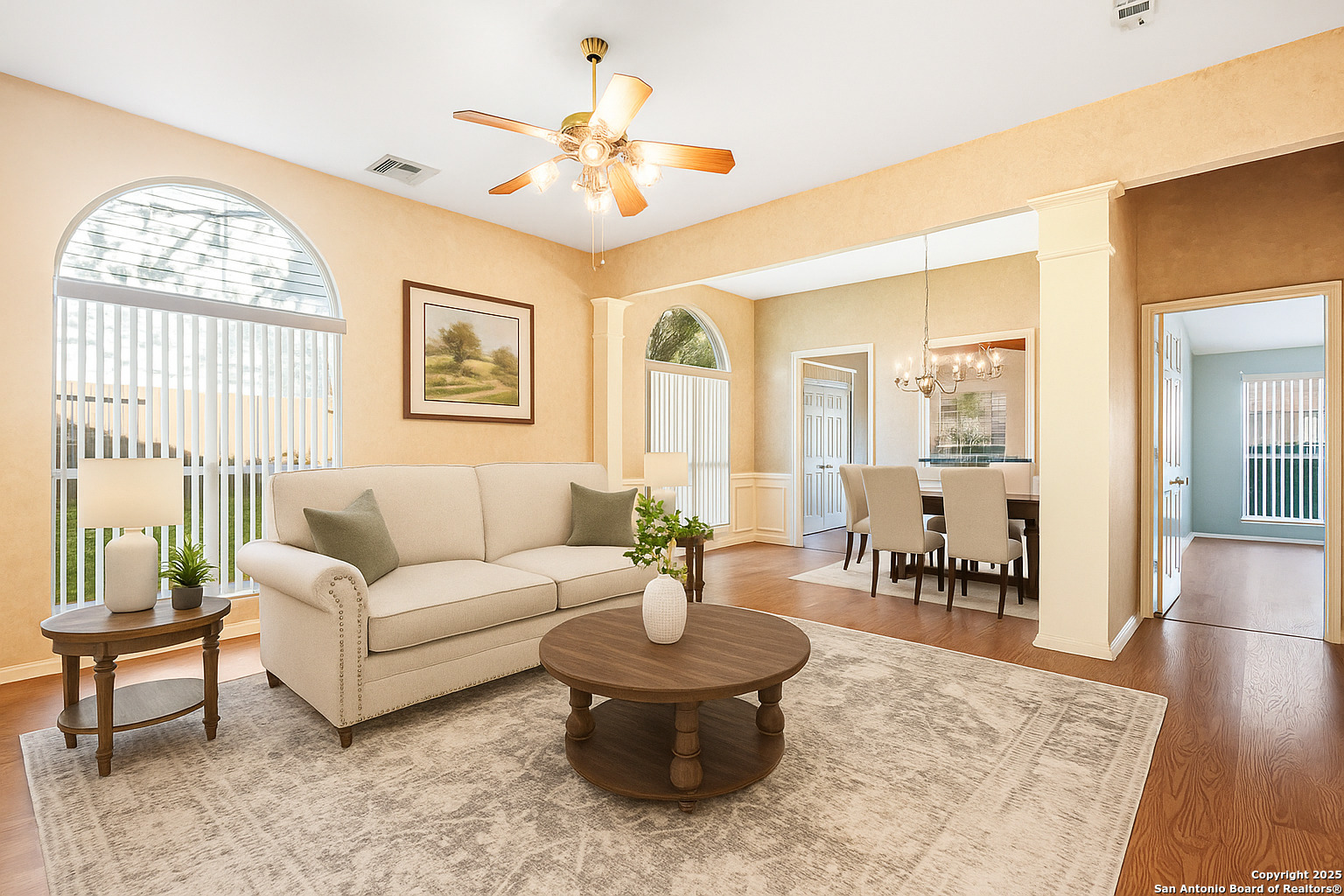 Nestled beneath a canopy of graceful oaks in the heart of Schertz, this single-story brick beauty feels like a hidden retreat designed for peaceful everyday living. The moment you arrive, the lush green lawn and freshly trimmed trees create a sense of calm and care. Step inside and you’ll find an inviting open floor plan filled with natural light, high ceilings, and thoughtful updates throughout — a space that balances comfort and functionality with timeless charm.